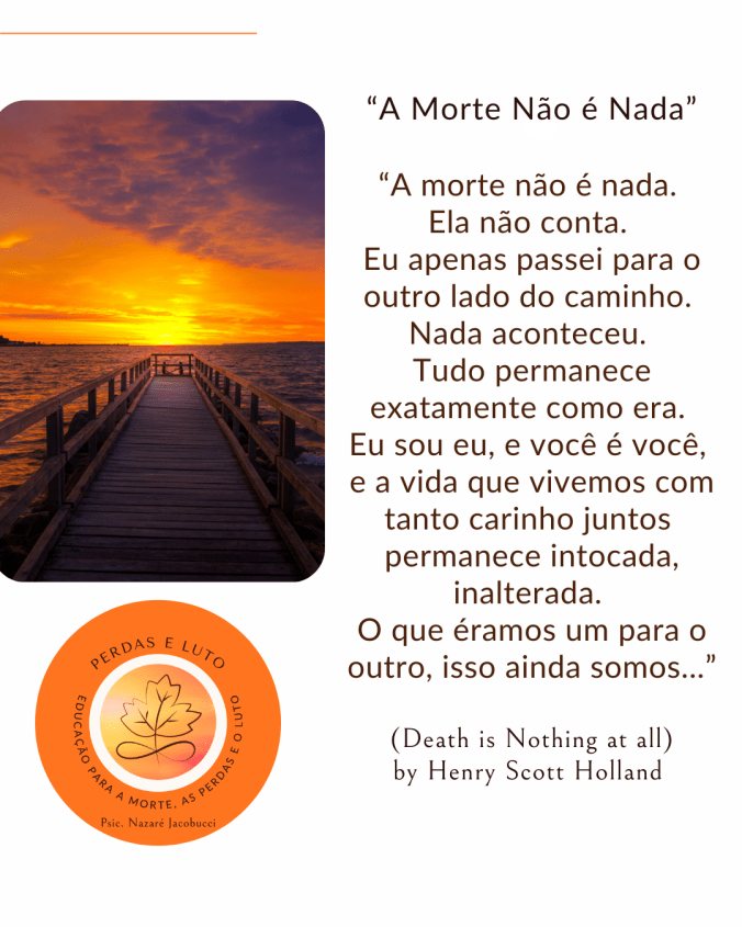 “A morte separa os corpos, mas não desfaz o que o amor costurou; o afeto permanece onde nenhuma despedida alcança” (Psic. Nazaré Jacobucci)