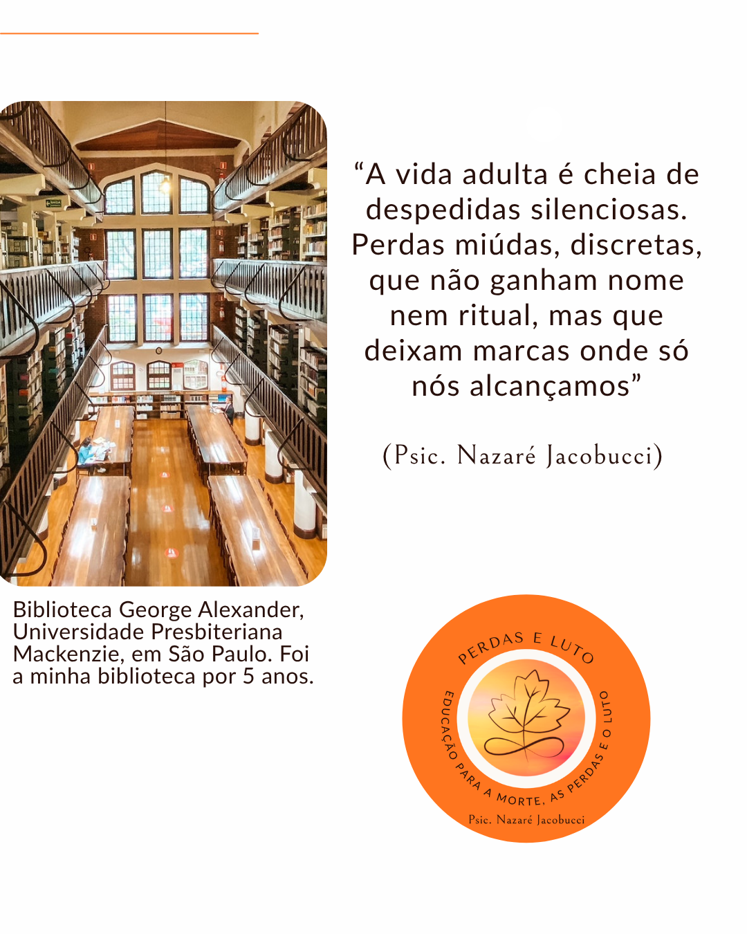 “A vida adulta é cheia de despedidas silenciosas. Perdas miúdas, discretas, que não ganham nome nem ritual, mas que deixam marcas onde só nós alcançamos” (Psic. Nazaré Jacobucci)