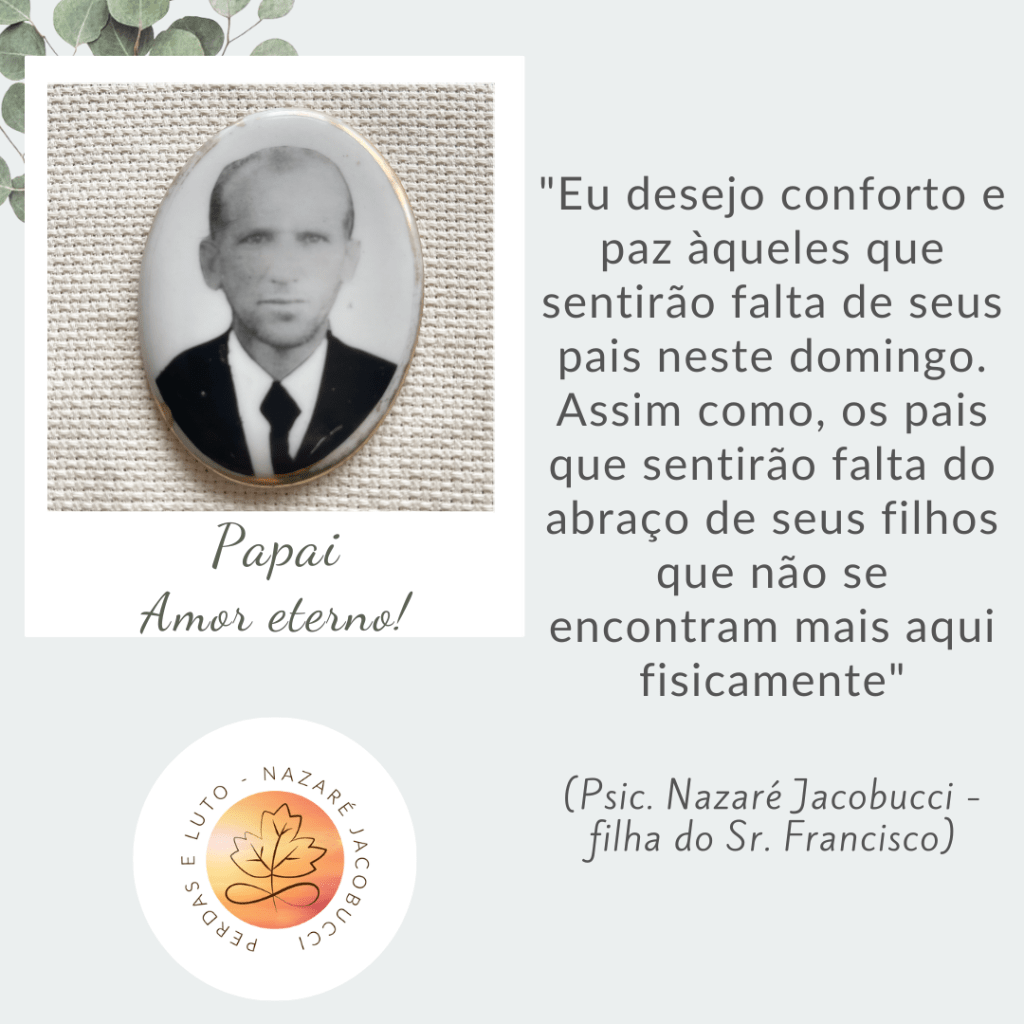 Nazaré perdi meu pai praticamente no dia do meu aniversário de 21 anos. Uma passagem para maioridade de forma traumática e dolorida. No seu relato identifico muitas faltas que vivi em momentos de minha vida. Minhas conquistas, medos, desamparo, ausências, saudade … mas o que fica com a ressignificação desse luto é a capacidade cada vez maior de ter empatia com quem vive um luto precoce. Só aumentou a minha capacidade de ouvir e entender o sofrimento do outro. Perdi um pai cedo mas tenho ele dentro de mim. Perdi mas aprendi a crescer!