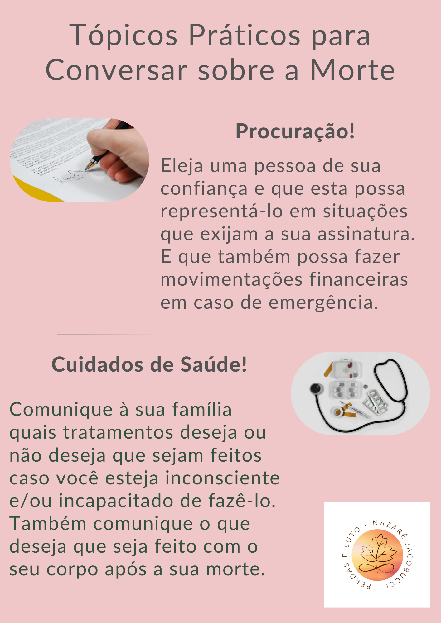 Sim, eu sei que conversar sobre a morte não é uma tarefa fácil, principalmente quando consideramos a complexidade dos aspectos emocionais e afetivos que o assunto naturalmente evoca nas pessoas. Pode ser muito difícil iniciar um diálogo com sua família. Entretanto, há certos tópicos práticos que fazem parte da morte e do morrer e que são muito importantes de serem discutidos.